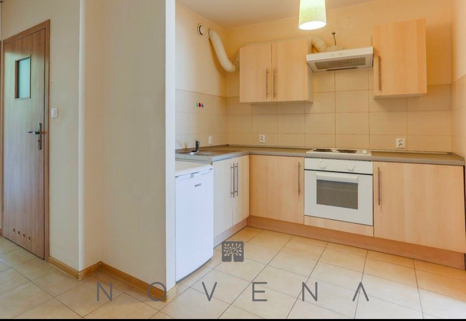 w kuchni znajdziesz lodówkę, płytę grzewczą, piekarnik, stolik i krzesła,